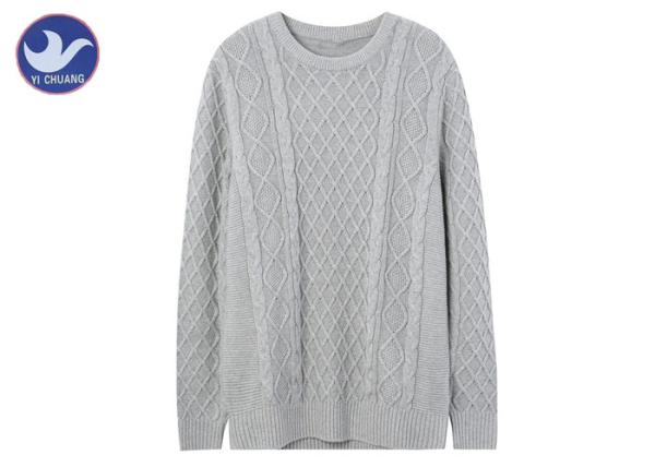 Pullover Men's Thick Winter Jumpers , Grey Cable Knit Long Sleeve Sweater Mens Images |